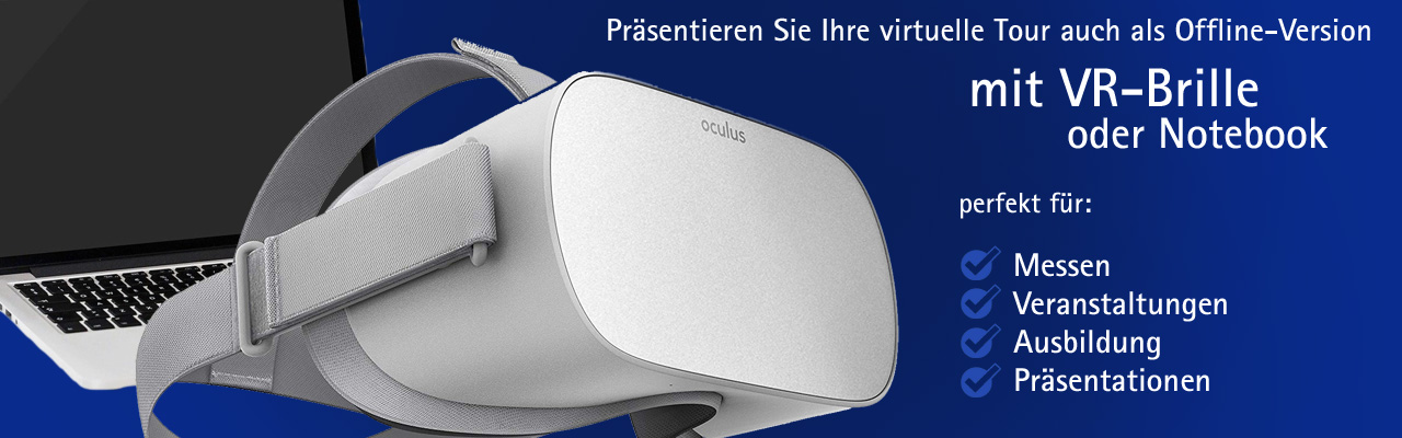Sie können bei uns auch ganz bequem eine für Sie vorkonfigurierte VR-Brille mit Ihrer Tour als Offline-Version bestellen!